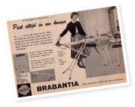 První reklama na Brabantii poukazující na maximální péči o prádlo pomocí žehlícího prkna.