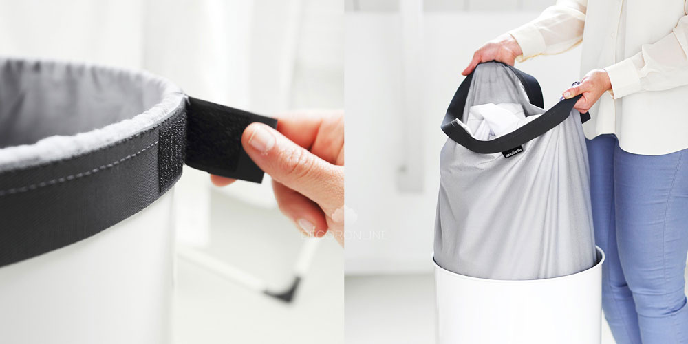 Často se také setkáváme s tím, že musíme koš i s prádlem vytáhnou z komory nebo jiné místnosti. Popřípadě ho jen odsunout kousek stranou. Přiznejme si však pravdu, že zcela naplněný koš mnohačlenné rodiny má svou váhu. I na toho mysleli chytré hlavy ze společnosti Brabantia a vybavili své prádelní koše bavlněnými vaky, které snadno odepnete a přenesete i s prádlem k pračce. Ubyde vám váha koše jako takového.