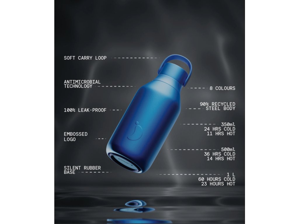 Series 3 byla navržena pro každodenní používání v reálném životě – je odolná, neprotéká a skvěle se přizpůsobí vašemu tempu. Potěší také důrazem na dlouhou životnost a udržitelnost. Jednotlivé části lze snadno rozebrat, důkladně vyčistit a v případě opotřebení vyměnit. Láhev je navíc vyrobena z 90 % z recyklované nerezové oceli a značka Chilly’s je certifikovaná jako B Corp.
