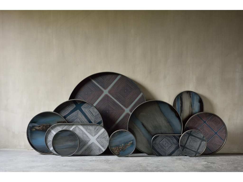 Kolekce podnosů patří do tvorby designérky Dawn Sweitzer. Hlavním prvkem jsou originální kresby tuší. Barva se na sklo nanáší ručně, takže design každého podnosu je jedinečný sám o sobě! Jsou vyrobeny ze dřeva a skleněné desky. Výrazná a luxusní kolekce podnosů rozzáří prostor nadčasovým designem a oslňujícími odlesky. Podnosy různých designů mezi sebou můžete kombinovat a vytvořit si skutečně originální styl! Vybírat můžete z široké škály barev, tvarů a velikostí. Stanou se perfektním doplňkem vašeho interiéru. Buďte odvážní, kombinujte!