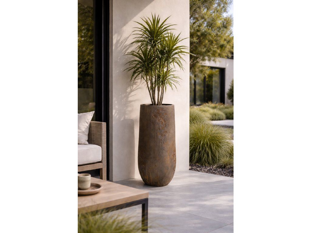 Květináč je vyroben z materiálu Ficonstone, který spojuje pevnost s nízkou hmotností. Díky tomu se s ním snadno manipuluje a můžete jej jednoduše umístit přesně tam, kde chcete vytvořit zelený akcent – v interiéru i exteriéru.