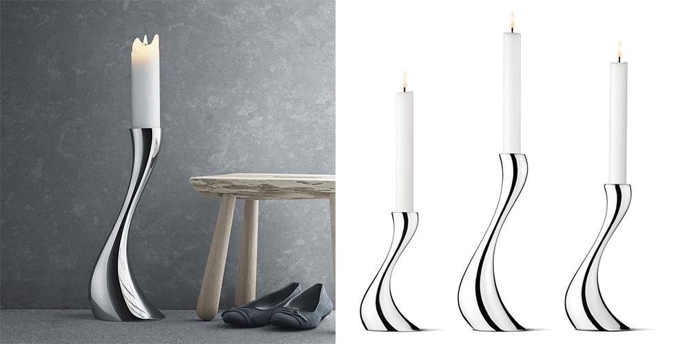 Luxus, styl a ocel. Svícen Cobra od Georg Jensen nabízí to nejlepší napříč kovovými svícny. Dominantní tvar, který koresponduje s lesklým materiálem vyniká nejlépe v přítomnosti dřevěných materiálů. Dopřejte si ve svém domově svícení jako na zámku.