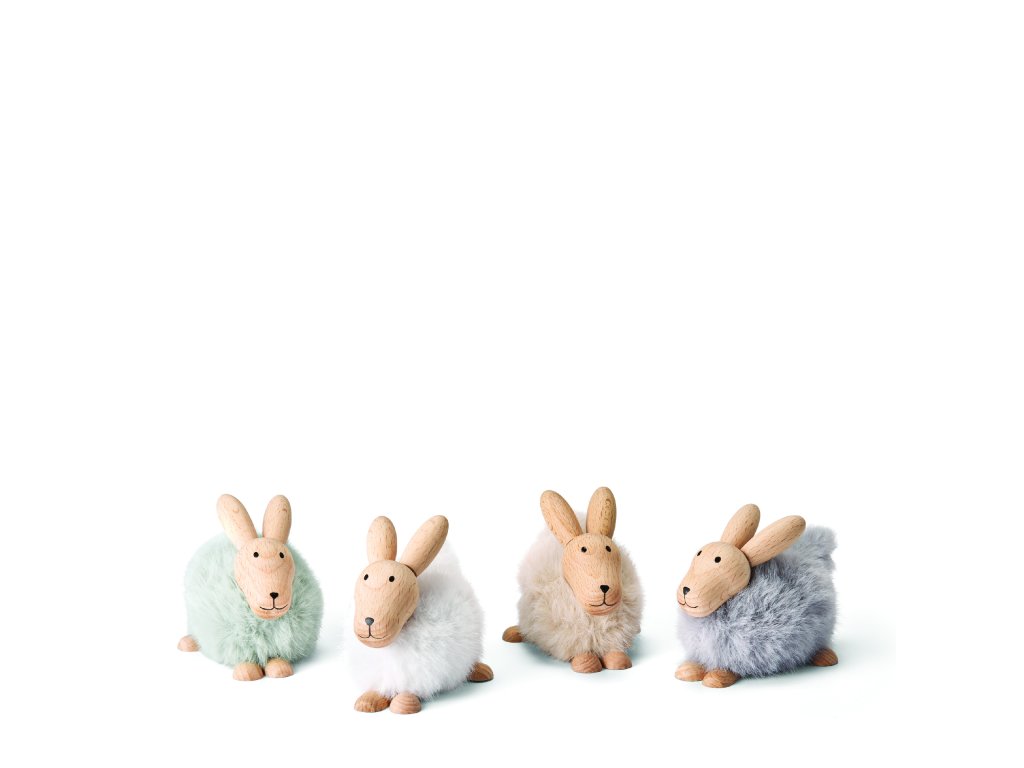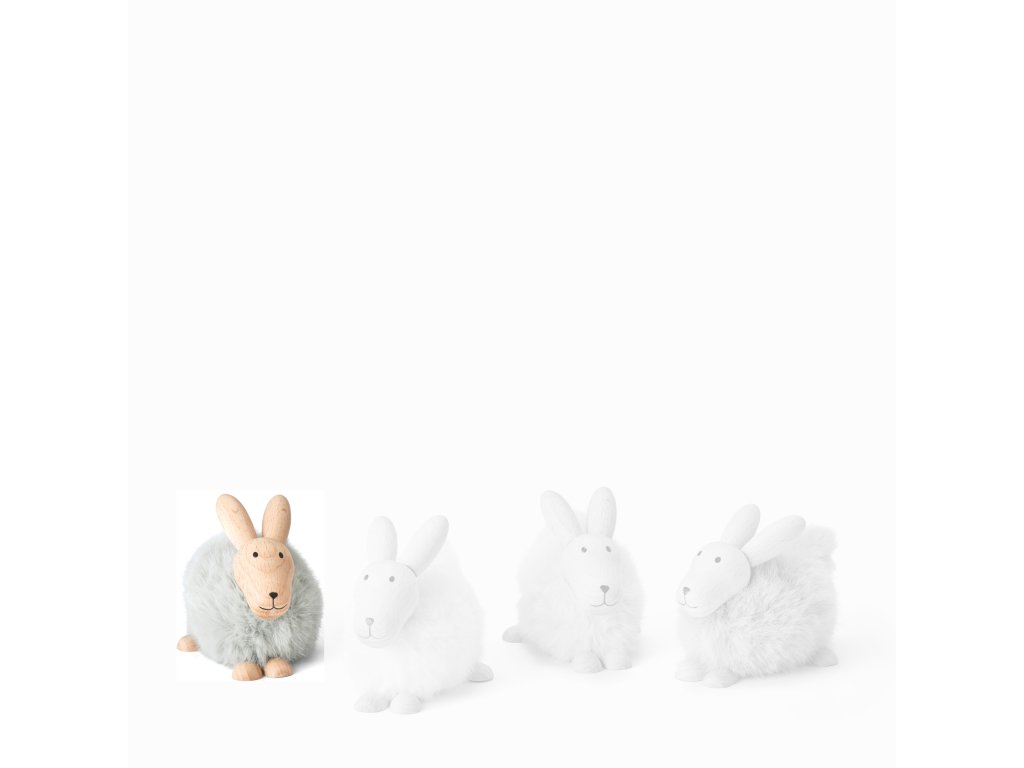 Roztomilý králíček Emily od Philippi v bílé, zelené, šedé a béžové barvě je vyroben z kvalitního bukového dřeva a hebké umělé kožešiny – stylová jarní dekorace, která potěší na pohled i na dotek.