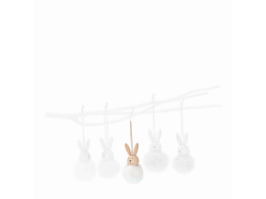 Roztomilý králíček Emily od Philippi v bílé, zelené, šedé a béžové barvě je vyroben z kvalitního bukového dřeva a hebké umělé kožešiny – stylová jarní dekorace, která potěší na pohled i na dotek.